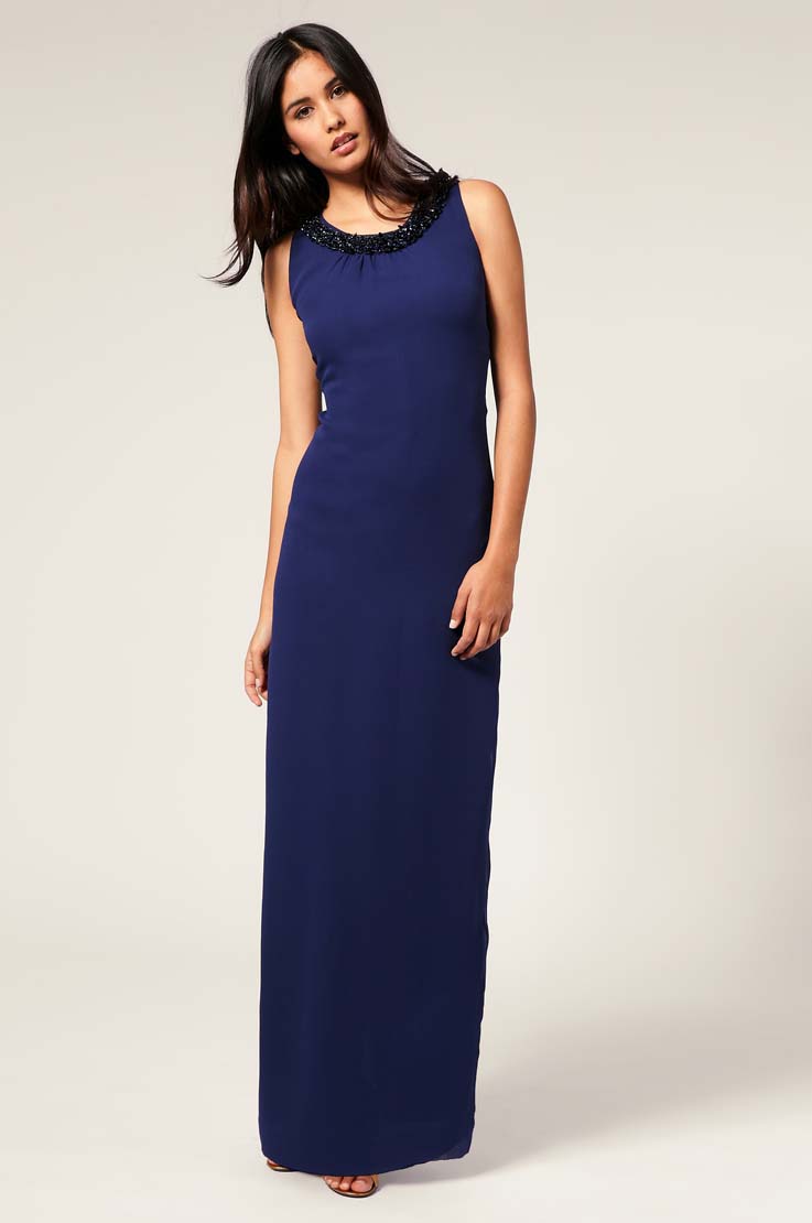 Enamorada estoy de este vestido azul profundo de Coast. Modelo Antonia. Minimalista y con una cadena al cuello imitando un collar.